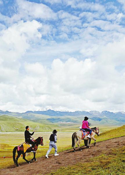 在塔公草原騎馬,是游客最為向往的事情。 四川日報全媒體記者 華小峰 攝