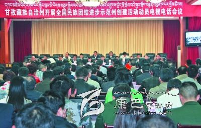 本網(wǎng)訊(記者 秦松 文/圖) 5月26日,全州開展全國民族團結(jié)進步示范州創(chuàng)建活動動員電視電話會議在康定召開。會議表彰了全州第四次民族團結(jié)進步模范集體、模范個人(戶),安排部署全國民族團結(jié)進步示范州創(chuàng)建工作。