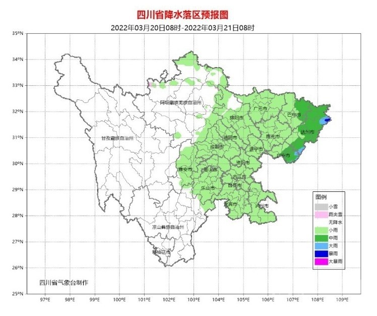 早在3月18日,四川省氣象臺便發(fā)出了強降溫黃色預警。預計19日傍晚~22日,盆地和涼山州東北部將有一次明顯的降溫降雨天氣過(guò)程,日平均氣溫將累計下降7~12℃,最高氣溫將下降15℃或以上;冷空氣影響時(shí)有3-5級偏北風(fēng),山口河谷風(fēng)力可達6級或以上,局部地方有短時(shí)強降水、雷暴大風(fēng)或冰雹等強對流天氣,其中盆地東北部、中部和南部有大雨到暴雨。