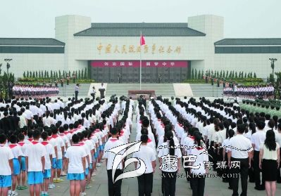 盧溝橋畔,坐落在這里的中國人民抗日戰(zhàn)爭(zhēng)紀(jì)念館雄偉莊嚴(yán)。紀(jì)念館前廣場(chǎng)上,鮮艷的五星紅旗高高飄揚(yáng)。紀(jì)念館正門上方懸掛著“勿忘國恥 圓夢(mèng)中華”的巨幅標(biāo)語。