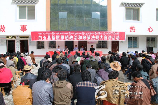 8月的白玉,烈日當(dāng)頭,秋高氣爽。31日上午,絨蓋鄉(xiāng)政府大院內(nèi),白玉縣基層思想政治和政策法規(guī)大宣講活動(dòng)正在這里精彩“上演”,400多名前來“聽課”的各村群眾正津津有味地品味著縣宣講團(tuán)成員松吉尼瑪通俗易懂的藏語大宣講。從黨的十八大到十八屆三中全會(huì)精神,從糧食直補(bǔ)到低保、新農(nóng)保,從養(yǎng)老保險(xiǎn)、殘疾人幫扶到相關(guān)法律法規(guī),宣講者深入淺出,傾聽者全神貫注。