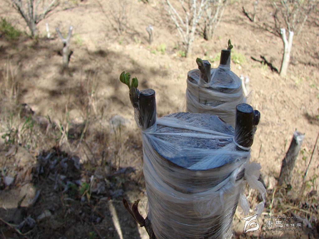 吐出嫩芽的核桃嫁接苗。