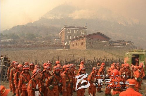 爐霍專業(yè)森林撲火隊(duì)隊(duì)長阿代介紹說:“接到命令后,我們立刻組織34名撲火隊(duì)員,緊急出動四輛森林消防車和一輛行動車趕赴火場。因火場山高路陡,撲火器材只能用人工的方式運(yùn)送到一線,70公斤的器材兩個人扛,15斤一盤的水袋一個人一次背兩三盤,有的地方需要涉過刺骨冰冷的河水到達(dá)一線,許多隊(duì)員都出現(xiàn)了體力透支的現(xiàn)象,但沒有一個人叫苦喊累。”