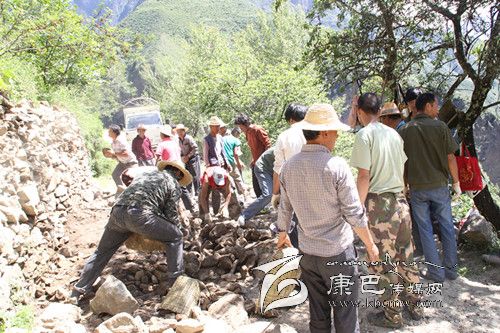 丹巴縣岳扎鄉(xiāng)納頂通村公路全長里程13公里,惠及上、中、下納頂和斯交四村319戶1196人,因前期連續(xù)強(qiáng)降雨,納頂通村公路主干道垮塌嚴(yán)重,交通一度被阻斷,嚴(yán)重影響了村民的出行安全以及農(nóng)副產(chǎn)品外運(yùn)。為盡快搶通公路,多名干部群眾在水電企業(yè)裝載機(jī)的全程協(xié)助下,經(jīng)過近10個(gè)小時(shí)的連續(xù)奮戰(zhàn),終于完成了通村公路的清障工作。圖為村民們在公路上清障。 (卿莉 攝影報(bào)道)