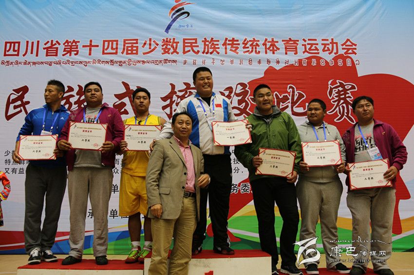 2014年11月4日—9日,四川省第十四屆少數(shù)民族傳統(tǒng)體育運動會在宜賓市隆重舉行。在此次民運會上,由138人組成的甘孜州代表團代表112萬父老鄉(xiāng)親參加了本屆民運會射弩、民族式摔跤(格、北嘎、且里西、絆跤)、蹴球、押加、珍珠球、高腳競速、板鞋競速、陀螺、苗族手毽等9個競賽項目和競技類、技巧類、綜合類3個表演項目的比賽。