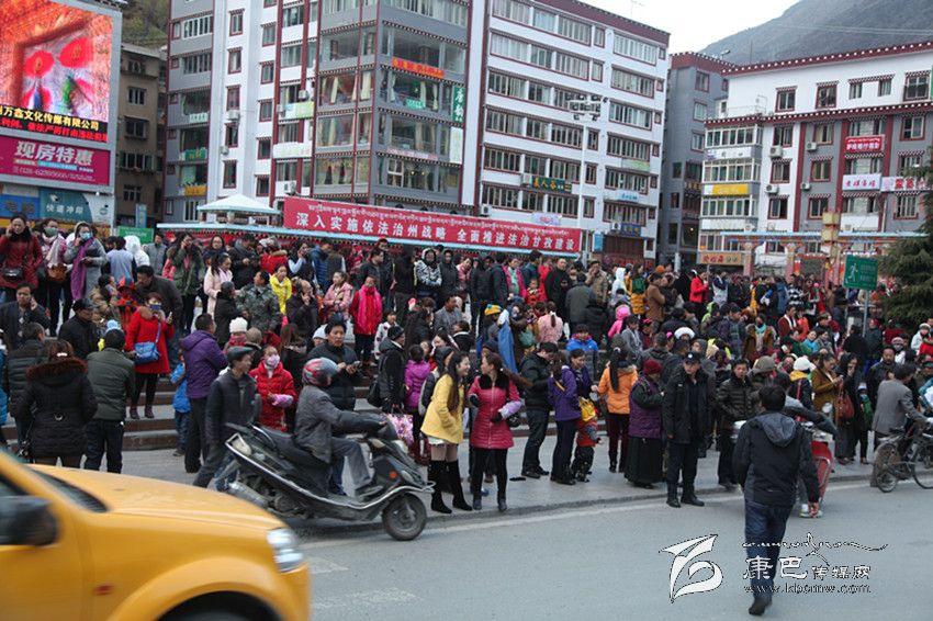 震后幾分鐘,康定市民便紛紛沖出家門,趕到城區(qū)開闊地帶。記者在將軍橋一帶看到,安雀寺外的小廣場上早已人山人海;標注有臨時避難場所的情歌廣場一帶,數(shù)以萬計的市民已經(jīng)集聚在廣場;州群藝館外的街道也成了臨時避難場所,有的市民甚至把被蓋也搬了出來;在格薩爾酒店一側(cè),通往州委黨校的街道上站滿了焦急的人群;在城區(qū)最開闊的北門廣場,更是被人流擠得水泄不通。