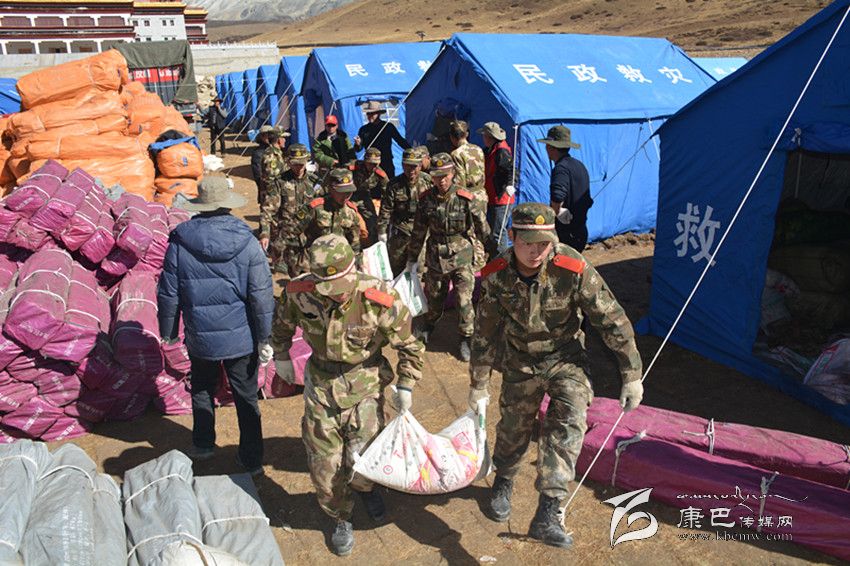 州森警支隊(duì)參謀長(zhǎng)帶前指和康定中隊(duì)60人到達(dá)震中塔公鎮(zhèn)奪讓村和木雅祖慶學(xué)校。官兵看到校舍慘景和師生驚慌失措表情,忘記了奔波疲勞和自身安危,有序疏散30名師生、搶救學(xué)校2臺(tái)受損車輛,冒著零下近10度的低溫,連夜為師生搭建帳篷17頂、簡(jiǎn)易廁所10個(gè),參戰(zhàn)官兵一夜未睡奮戰(zhàn)至黎明。23日8時(shí)10分,參戰(zhàn)的森警官兵又奉命轉(zhuǎn)戰(zhàn)至瓦澤鄉(xiāng)魚子西1、2、3村,為藏牧民轉(zhuǎn)移牦牛等牲畜200余頭,從危房中搬運(yùn)大米、青稞等糧食11.8噸,沙發(fā)、銅火爐、電視機(jī)等1680余件(套)。24日上午官兵又深入到瓦澤鄉(xiāng)麥巴村,為受災(zāi)群眾拆除危房2間、搬運(yùn)危房?jī)?nèi)貴重物品10余噸,下午,抗震救災(zāi)指揮部又緊急調(diào)參戰(zhàn)森警官兵為沙德鄉(xiāng)運(yùn)送棉帳篷等救災(zāi)物資,支隊(duì)前指帶50人動(dòng)用6臺(tái)車輛機(jī)動(dòng)110公里到達(dá)沙德鄉(xiāng)政府,又連夜劃分四個(gè)行動(dòng)小組為沙德鄉(xiāng)7個(gè)偏遠(yuǎn)村(組)將帳篷運(yùn)送到位,官兵一夜未睡將10余頂棉帳篷依次搭建到位。25日上午,官兵又接到塔公鎮(zhèn)扎西寺僧尼告急,60名官兵顧不上吃飯,緊急出動(dòng)運(yùn)輸15頂棉帳篷,奮戰(zhàn)扎西寺5個(gè)安置點(diǎn),至晚19時(shí)才搭建完畢,官兵就座運(yùn)兵車?yán)锎蝽镄菡?6日上午,武警總部工作組看望慰問(wèn)參戰(zhàn)一線官兵,官兵精神振作,按抗震救災(zāi)指揮部指示,60名官兵在聯(lián)指物資發(fā)放中心,搬運(yùn)裝卸棉帳篷、棉大衣、棉被等越冬衣物和礦泉水、大米、面粉、蔬菜等生活物資68噸。目前,60名官兵仍?shī)^戰(zhàn)一線,雅江大隊(duì)、道孚大隊(duì)部分官兵在各自轄區(qū)展開(kāi)震后自救互救行動(dòng)。