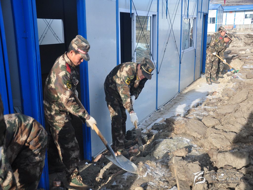 堅(jiān)守在康定“11.22”地震重災(zāi)區(qū)塔公鎮(zhèn)的武警四川總隊(duì)二支隊(duì)抗震救災(zāi)官兵,克服高寒缺氧,全力投入板房學(xué)校搭建,官兵們在艱苦的環(huán)境中度過了2015年的第一天。