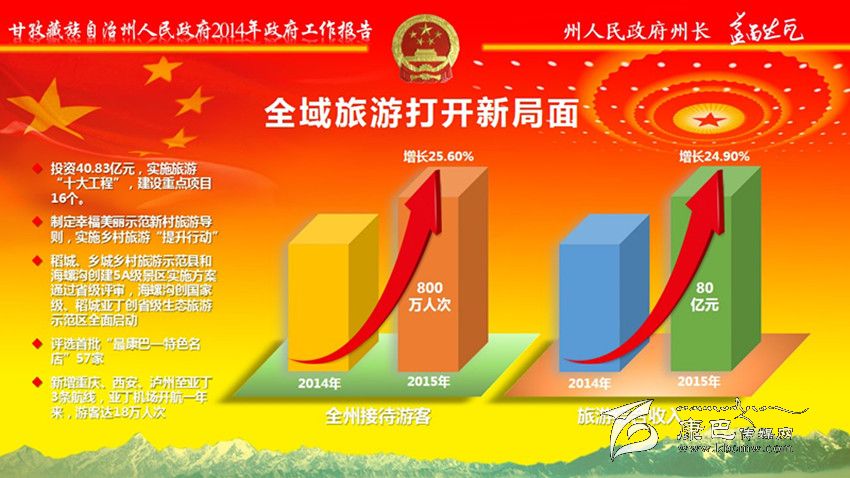 2015年是實施“十二五”規(guī)劃的收官之年,是承接“十三五”規(guī)劃的奠基之年,是全面深化改革的攻堅之年,是落實政府“1+8”文件的關鍵之年。政府工作的總體要求是:以黨的十八大和十八屆三中、四中全會精神為指引,貫徹落實州委十屆六次全委(擴大)會議精神,堅持“統(tǒng)籌聯(lián)動、穩(wěn)中求進、加快發(fā)展”工作基調(diào),以全域旅游統(tǒng)領經(jīng)濟社會發(fā)展,以民生改善凝聚民心民力,以災后重建塑造美好家園,以依法治州促進穩(wěn)定和諧,推動經(jīng)濟社會持續(xù)健康發(fā)展。