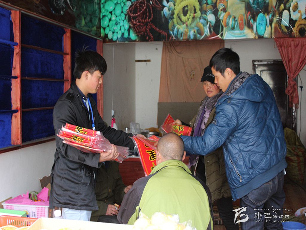 海螺溝景區(qū)管理局向群眾發(fā)放春聯(lián)。
