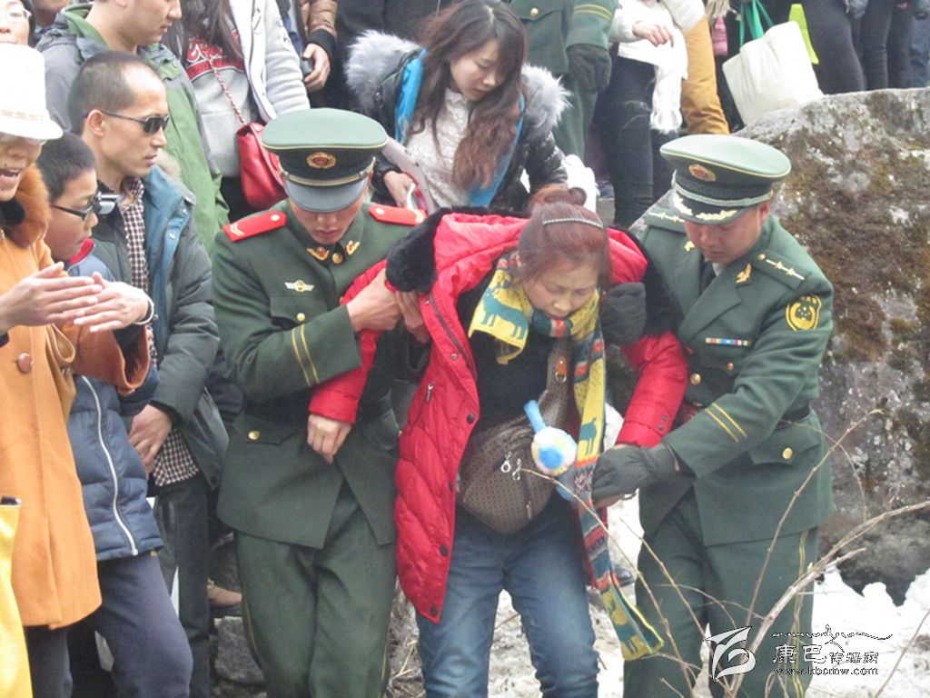 春節(jié)期間,擔(dān)負海螺溝景區(qū)執(zhí)勤官兵服務(wù)身體不適的游客。