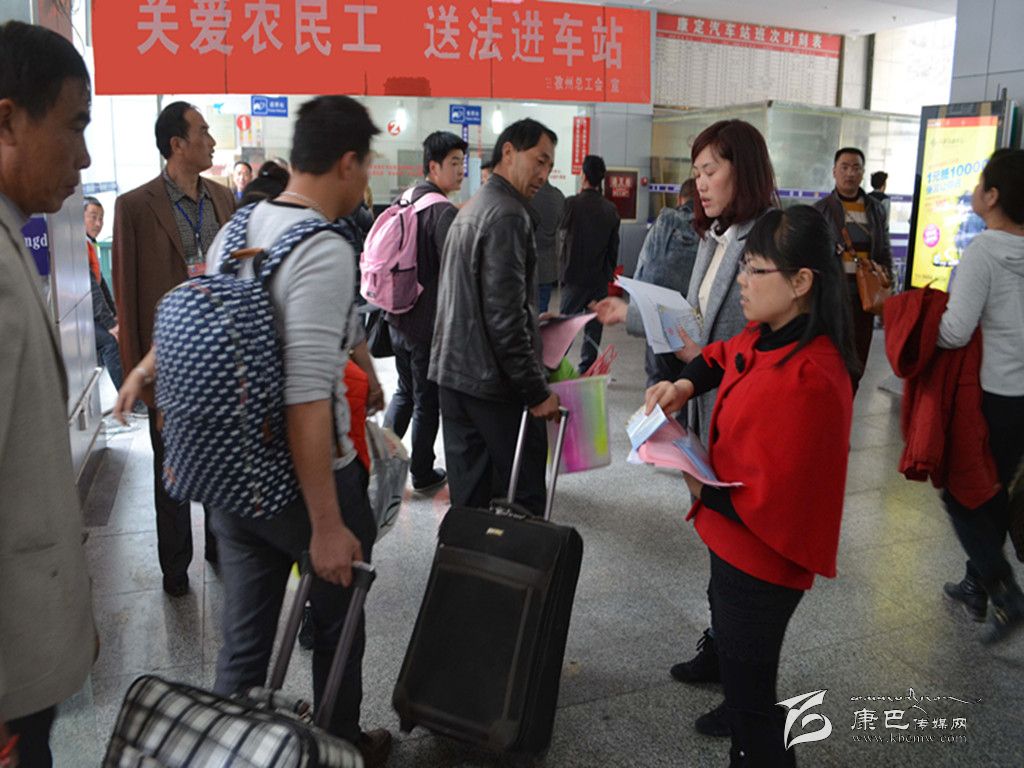 本網(wǎng)訊(宋華玉 記者 秦松 文/圖)“這個(gè)資料太實(shí)用了,讓我們可以了解自己的權(quán)益有哪些、勞動(dòng)合同書是怎樣的。”當(dāng)在康定汽車站內(nèi)的農(nóng)民工拿到由州總工會(huì)發(fā)放的法冶宣傳資料時(shí),他們?nèi)缫曊鋵毎愕卣J(rèn)真閱讀著宣傳資料,或小心翼翼地把資料裝進(jìn)行李中。4月5日至4月13日,州總工會(huì)在康定汽車站開展了“關(guān)愛農(nóng)民工、送法進(jìn)車站”法治宣傳活動(dòng),正式啟動(dòng)了“學(xué)雷鋒、慶五一”服務(wù)職工(農(nóng)民工)系列活動(dòng),拉開了州總工會(huì)2015年法制宣傳活動(dòng)的序幕。