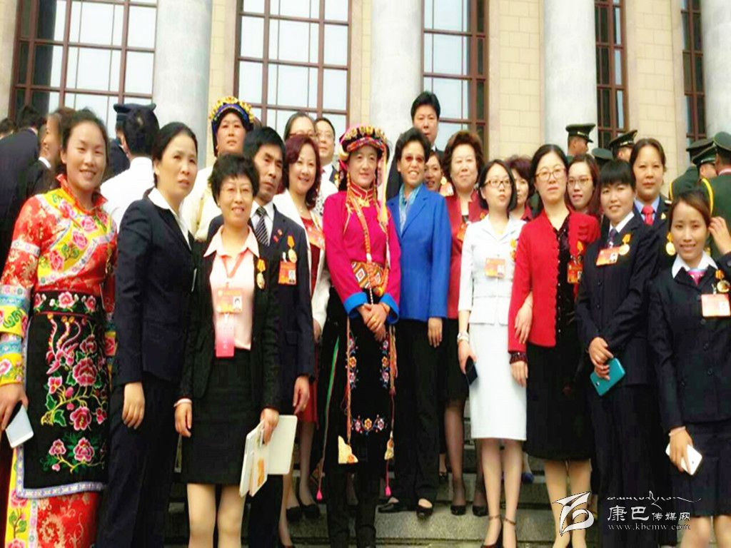 桂花與部分全國勞模在人民大會(huì)堂前合影。