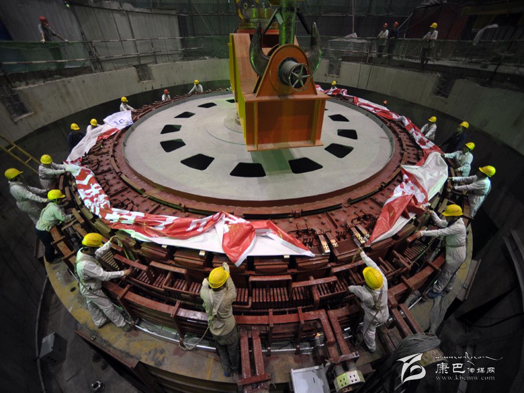 該轉(zhuǎn)子直徑為12.39米,高2.23米,重577噸,總吊裝重量620噸,是黃金坪水電站機(jī)電安裝工程中單件吊裝重量最大的設(shè)備。該轉(zhuǎn)子由東方電機(jī)有限公司制造。該轉(zhuǎn)子的順利就位,為該電站2號機(jī)組10月底投產(chǎn)發(fā)電創(chuàng)造了條件。