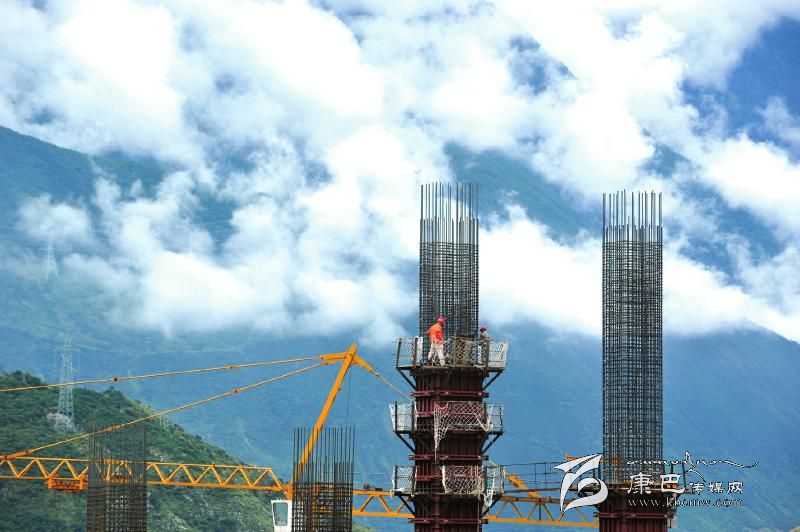 出了瀘定縣城,沿著318國(guó)道過了咱里大橋,就能夠看到半山腰上初具規(guī)模的塔基。