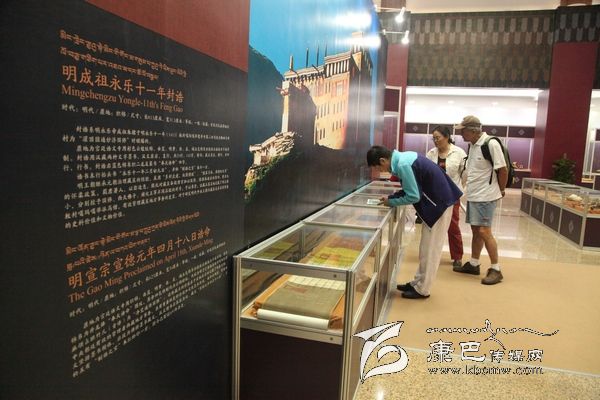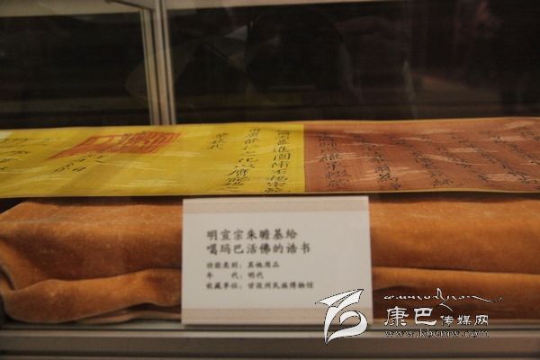 據(jù)介紹,明成祖永樂十一年封誥為國家一級文物,系明永樂帝成祖朱棣于明永樂十一年(1413)敕封噶瑪噶舉楚布寺第二世司徒活佛曲吉降村為“灌頂圓通妙濟國師”時頒賜。那是一份來自600年前的古老信息,也是一份見證中國千百年來民族團結、祖國統(tǒng)一的誥文。誥文清楚的記述了“永樂盛世”中甘孜人民在華夏大家庭中的和諧與共,也把宣德年間明朝文化,經(jīng)濟繁榮階段中康巴文化的不可或缺緊密的聯(lián)系在一起。