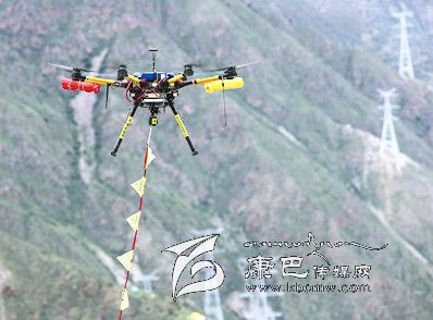 為應(yīng)對(duì)復(fù)雜地形和氣候環(huán)境,四川送變電公司使用了由四川電力應(yīng)急中心自主組裝的高科技“法寶”——八旋翼飛行器。