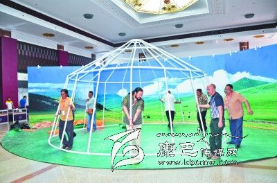 拾階而上,從序廳開始每走一步都會(huì)心生蓮花,首先映入眼簾的是兩堵巨大的LED顯示屏,屏幕上滾動(dòng)播放著旅游宣傳片,清澈的藍(lán)天、綠綠的草地、農(nóng)牧民們淳樸的笑意,眼睛開始跟著心靈旅行,而心的深處卻像長(zhǎng)出了一對(duì)靈巧的翅膀,振振欲飛。西廳的照片墻,除去未經(jīng)PS過(guò)的高原美景外,還展示了建州64年來(lái),甘孜兒女向上奮發(fā)的新面貌。由西廳出來(lái)至正廳,在跨進(jìn)門口的一剎那,便會(huì)被那頂蒙古包似的虎皮帳篷所吸住魂魄,流連、駐足、照相,它被人們傲慢地搭建在整個(gè)展廳最顯眼的位置,仿佛在箱底收藏了那么多年終于揚(yáng)眉吐氣。北京人是有眼福的,很多在甘孜州本土生活了幾十年的人都是第一次親眼見到這頂帳篷,所有的人都為之驚嘆,并好奇這頂帳篷背后的故事。而關(guān)于這頂虎皮帳篷的記載并不多,這頂帳篷原是屬于理塘縣“雍若本”人的,而“雍若本”人舊時(shí)為理塘毛埡的土司階層,由于他們的祖先是從青海游牧過(guò)來(lái)的部落,到現(xiàn)在都保留有流動(dòng)帳篷寺廟的風(fēng)俗,據(jù)專家們推測(cè)如此奢華威嚴(yán)的一頂帳篷可能是流動(dòng)的官府衙門。