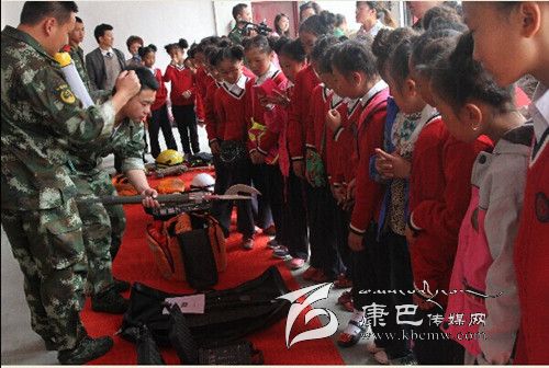 師生們?cè)诳刀h消防中隊(duì)副中隊(duì)長(zhǎng)李勇的帶領(lǐng)下,參觀了消防員宿舍、榮譽(yù)室、軍人俱樂(lè)部等。官兵們“豆腐塊”的被子引起了學(xué)生們濃厚的興趣和強(qiáng)烈的好奇心。不少孩子親自動(dòng)手,嘗試在消防官兵的指導(dǎo)下學(xué)習(xí)疊“豆腐”被子,并進(jìn)行了內(nèi)務(wù)整理。在消防器材展示環(huán)節(jié),師生們走進(jìn)車(chē)庫(kù),中隊(duì)官兵介紹了各類(lèi)消防器材裝備的名稱(chēng)、性能和使用方法以及各類(lèi)消防車(chē)、隔熱服、避火服、防化服和背戴空氣呼吸器等特勤器材的性能和使用方法。在消防安全課堂上,官兵們向?qū)W生們播放了《校園消防安全警示錄》,并結(jié)合實(shí)際向同學(xué)們講解了學(xué)校防火的重要性、火場(chǎng)逃生自救方法、初期火災(zāi)的撲救、滅火器的使用、如何報(bào)火警等基本消防知識(shí)。在聯(lián)歡活動(dòng)現(xiàn)場(chǎng),消防官兵傾力打造的舞蹈《小蘋(píng)果Style》贏得同學(xué)們滿堂喝彩,現(xiàn)場(chǎng)響起熱烈的掌聲。學(xué)生們帶來(lái)的《吉祥中國(guó)結(jié),美滿中國(guó)夢(mèng)》跳出了小朋友們的美滿幸福之情。文藝演出的最后,消防官兵們還為學(xué)生們帶來(lái)了消防時(shí)裝秀,穿著各式服裝的消防戰(zhàn)士閃亮登場(chǎng),向孩子們講解了這些服裝在各種災(zāi)害事故現(xiàn)場(chǎng)的用途。