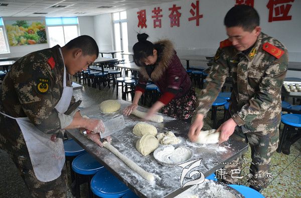 時值大暑季節(jié)的川西高原依然寒風凜冽,一抹朝陽灑在山頂積雪上,散發(fā)出黃白相間耀眼的光芒。此時,工化中隊廚房里鍋碗瓢盆開始演奏新一天的樂章,幾名炊事員忙來忙去,只見中隊長杜培峰的妻子李曉霞正蹲在門口幫著洗菜,“小杜跟我說中隊的炊事員最辛苦,讓這些小伙子炒菜做飯,真是難為他們了……”,四川妹子李曉霞用手擦了擦額頭的汗珠對筆者說。正說著,炊事班長跑過來一把端走李曉霞面前的菜盆:“嫂子,你這么早起來瞎忙活什么啊?你感冒還沒好呢,快回去休息吧!”