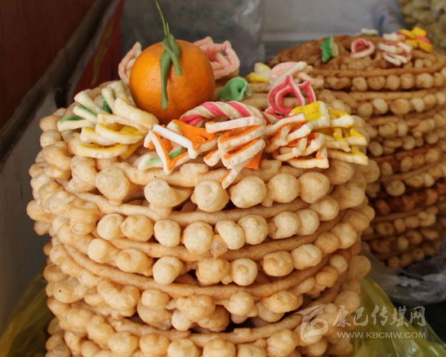 卡賽是藏族人過(guò)年必備的美食。用酥油、菜油、豬油等炸成多種面食,類似麻花、油條之類。多在藏歷年時(shí)食用。分為耳朵形、蝴蝶形、條形、方形、圓形等各種形狀,涂以顏料,裹以砂糖。既是裝飾神案的藝術(shù)品,又是款待客人的佳肴。“卡賽”的品種花色常常成為女主人勤勞、智慧和熱情的象征,在節(jié)日里分外引人注目。
