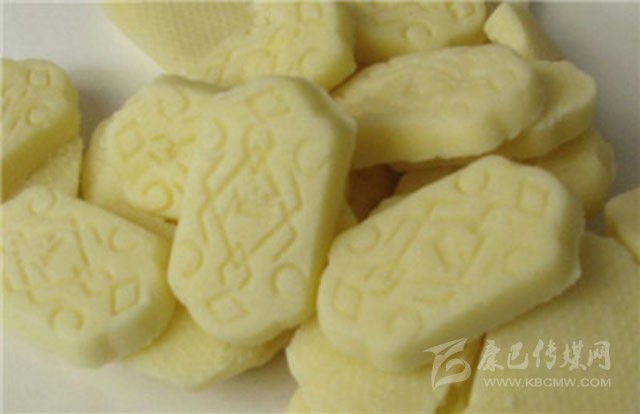 奶渣點(diǎn)心,藏語(yǔ)稱“特”。奶渣的做法很簡(jiǎn)單,通常選用做酥油剩下的奶渣篩出細(xì)奶渣,或用小石磨磨成粉,加入白糖拌勻,盛在盆內(nèi),澆入融化的酥油,冷卻凝固成形后即可取出食用。