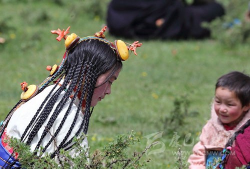 其實(shí)藏族人的審美很多同漢族不一樣,參加一場活動她們會在頭發(fā)上占去大量的時(shí)間,編成非常多的辮子。