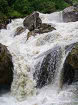 溝外交通與燕子溝大致相同,從南門關(guān)溝至兩河口14.5千米,在這里分做兩條路,一條往西南去牛園子和冰川,一條往西北去蟲草棚子(二號(hào)營地)和冰川。這里沒有食宿,道路艱險(xiǎn),馬不能通行,需要當(dāng)?shù)叵驅(qū)А?/p>